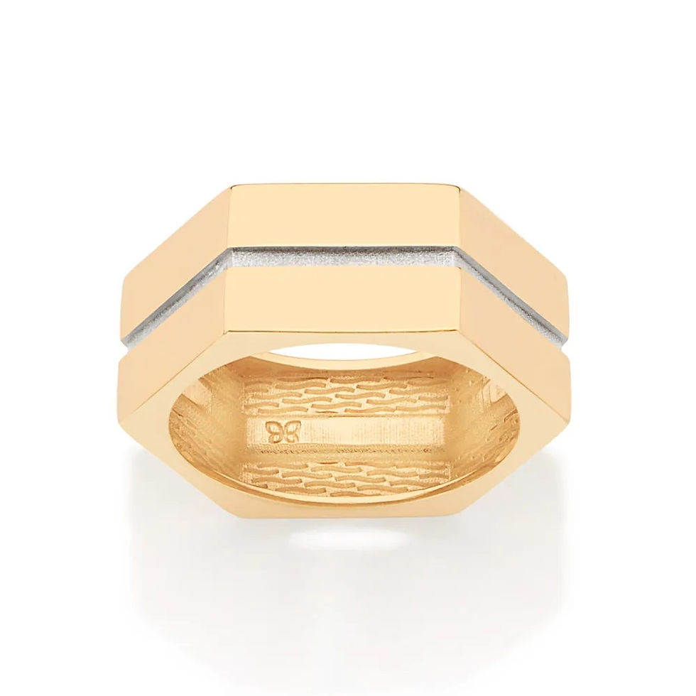 Anel masculino rommanel banhado a ouro formatura alfa e ômega 512713